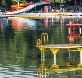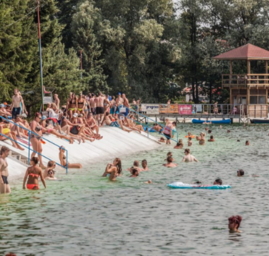 Vodní areál se sezónním provozem s rozlohou vodní plochy 41 200 m2, největší koupaliště a zařízení svého druhu ve střední Evropě. Vybavenost: velký plavecký bazén, bazén pro neplavce se 100 metrovým tobogánem a skluzavkami, dětské brouzdaliště a pískoviště s atrakcemi, tenisové kurty a minigolf, hřiště pro plážový volejbal, nohejbal, streetball, prostor pro hraní ruských kuželek, pétanque a elektronických šipek. V celém areálu je dostatečná síť stánků s občerstvením, bufetů, restaurací a tropico barů, jsou zde k dispozici parkoviště s kapacitou celkem cca 600 parkovacích míst, úschovna kol, cenností, šatny a půjčovna sportovních potřeb.